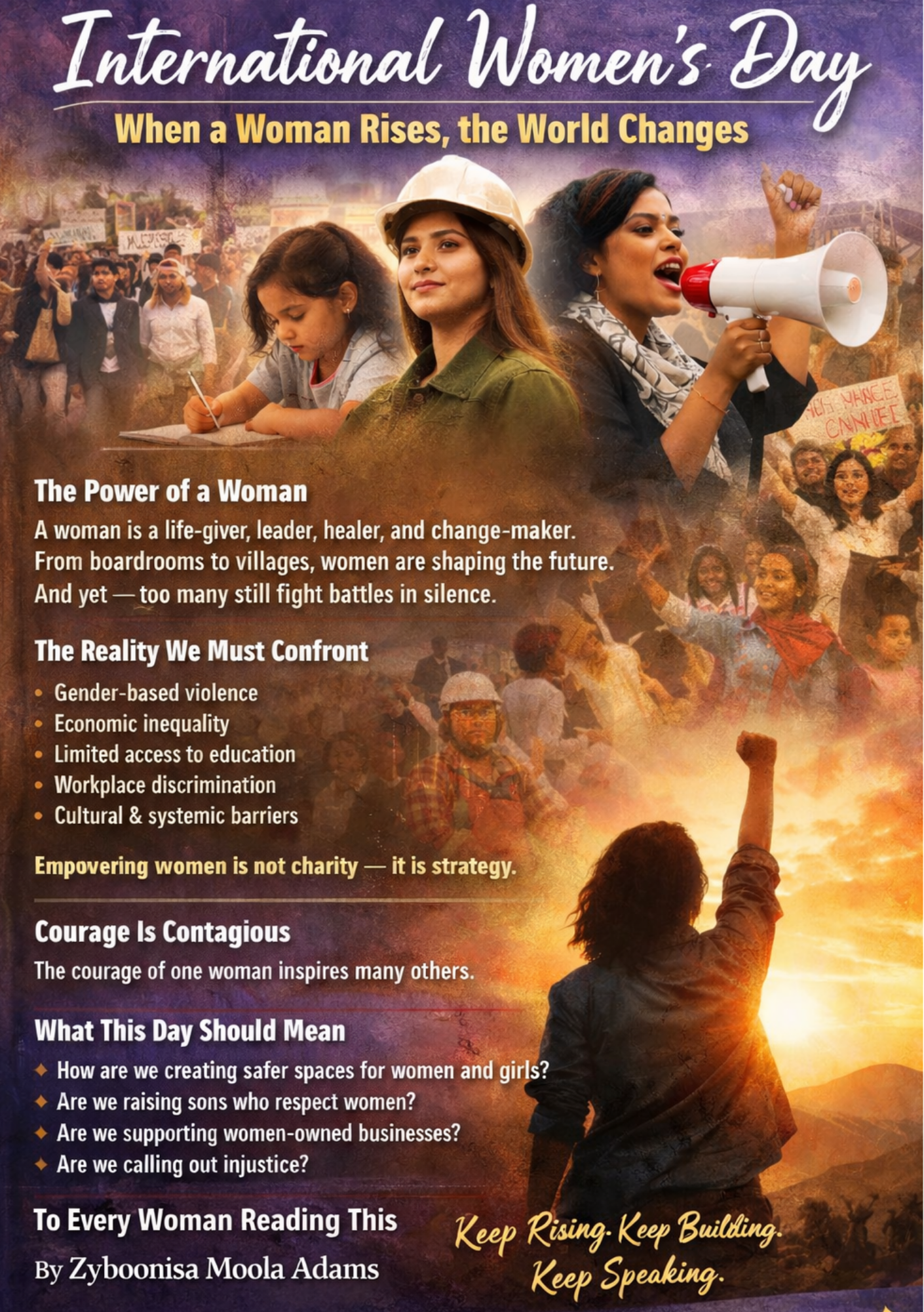 In many communities, women carry the weight of survival — emotionally, financially, and physically — often without recognition. International Women’s Day asks us not only to celebrate women, but to protect them. To uplift them. To invest in them.